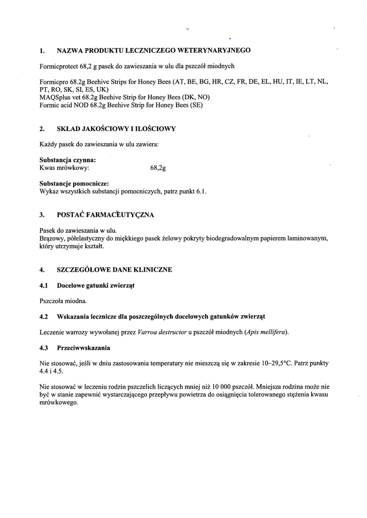 FORMICPROTECT - KARTA CHARAKTERYSTYKI LEKU