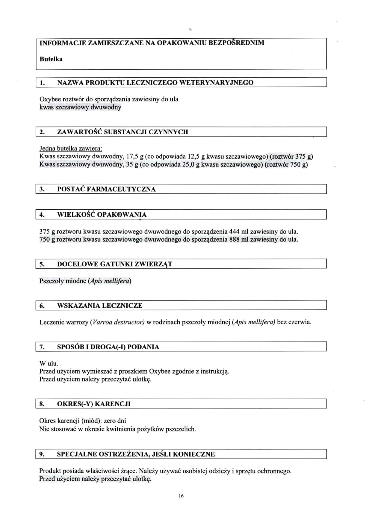 OXYBEE - KARTA CHARAKTERYSTYKI LEKU