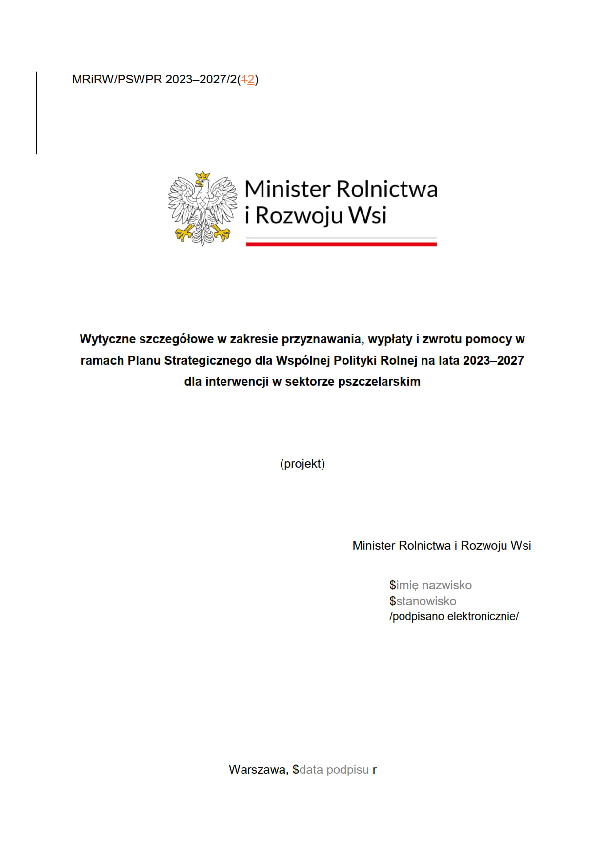 MRiRW 2024 - wytyczne do projektu PSZCZOŁY