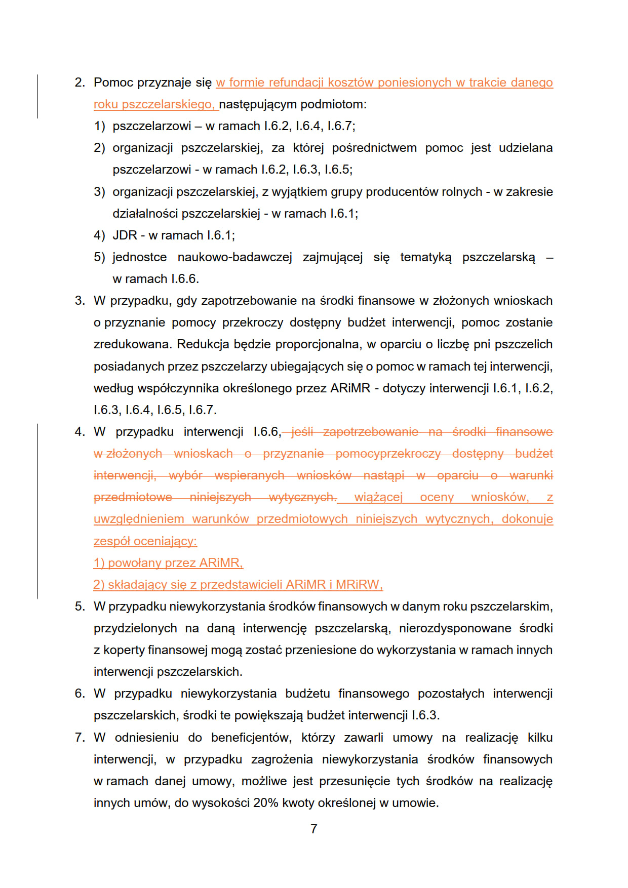 7. W odniesieniu do beneficjentów, którzy zawarli umowy na realizację kilku interwencji, w przypadku zagrożenia niewykorzystania środków finansowych w ramach danej umowy, możliwe jest przesunięcie tych środków na realizację innych umów, do wysokości 20% kwoty określonej w umowie.
