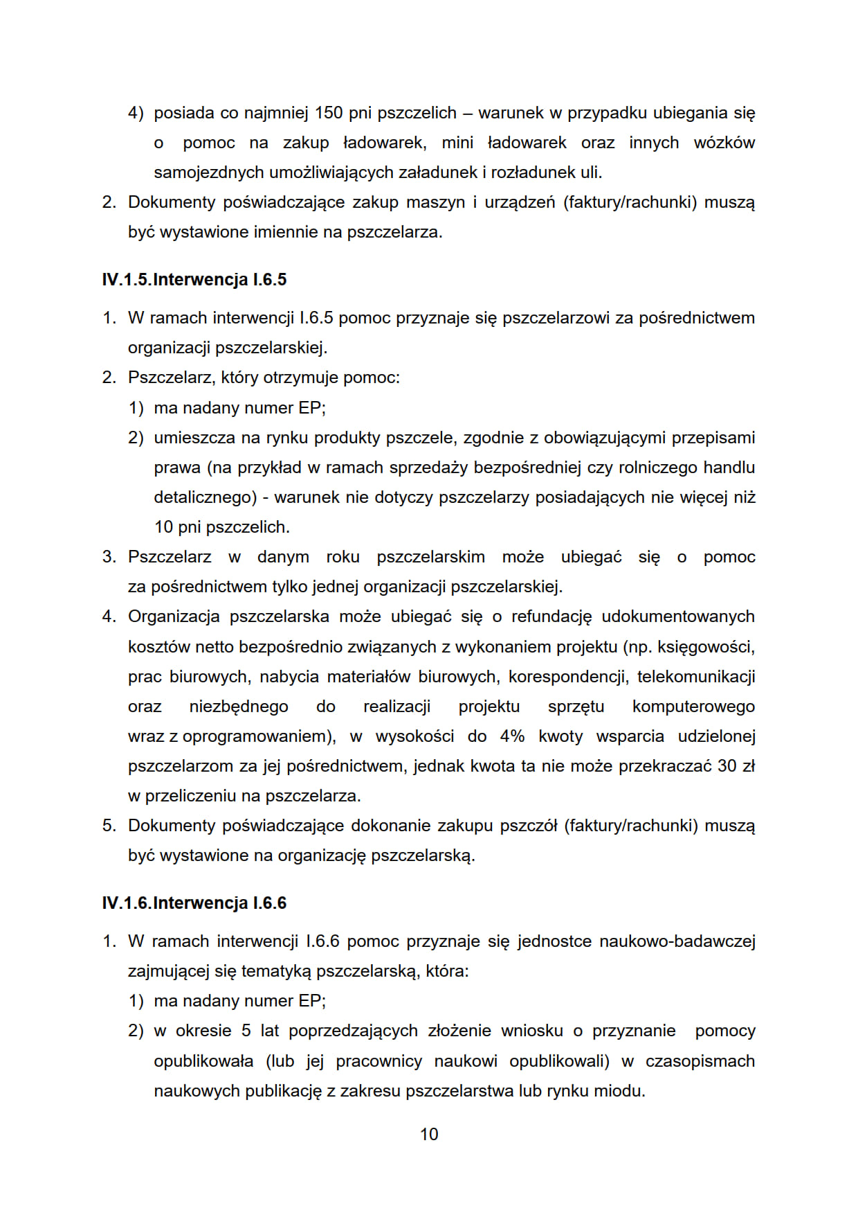 1. W ramach interwencji I.6.5 pomoc przyznaje się pszczelarzowi za pośrednictwem organizacji pszczelarskiej.