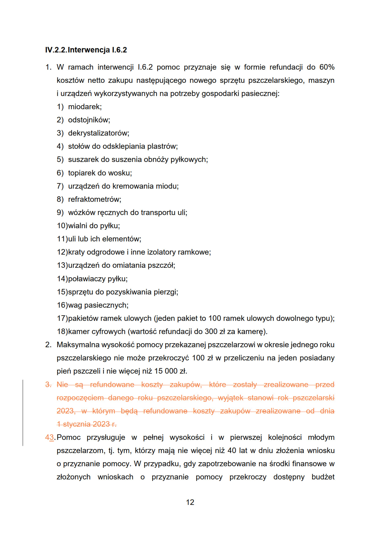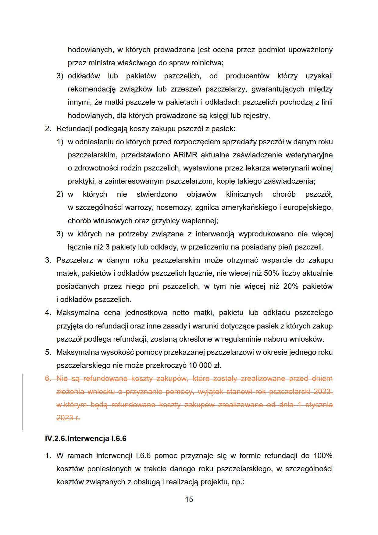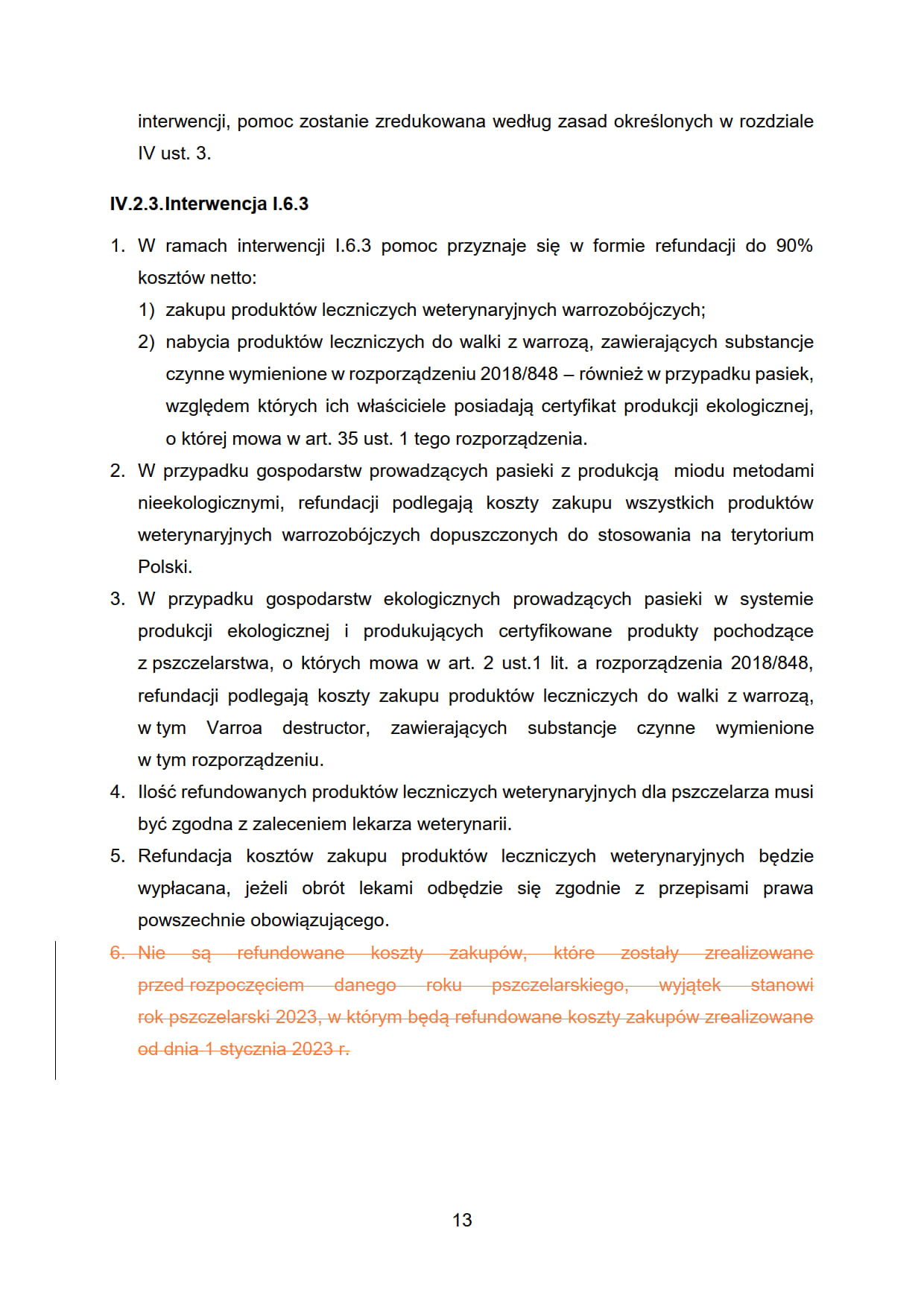 6. Nie są refundowane koszty zakupów, które zostały zrealizowane przed dniem złożenia wniosku o przyznanie pomocy, wyjątek stanowi rok pszczelarski 2023, w którym będą refundowane koszty zakupów zrealizowane od dnia 1 stycznia 2023 r.