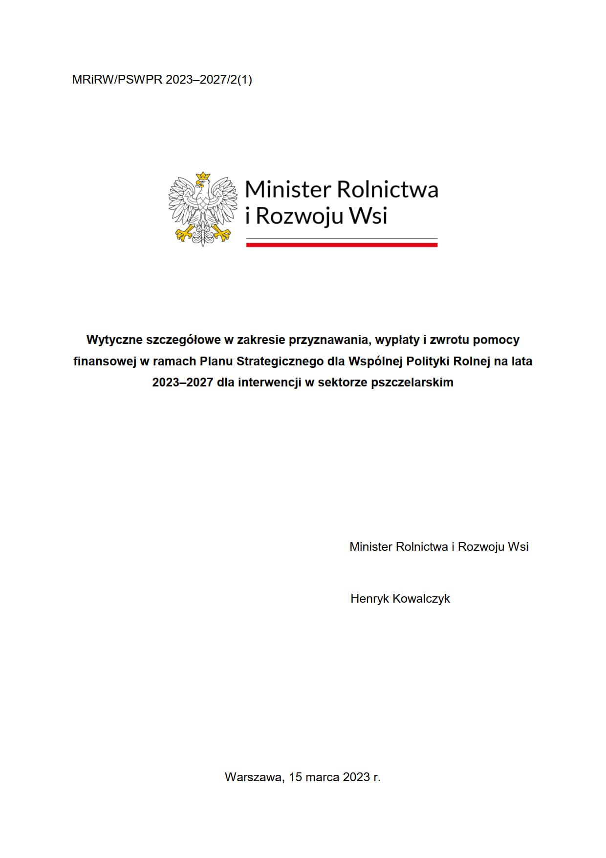 Zarządzenie_49_2023.pdf 0.13MBRegulamin naboru wniosków o przyznanie pomocy finansowej na rok pszczelarski 2023 w ramach Planu Strategicznego WPR na lata 2023-2027 (tekst jednolity)