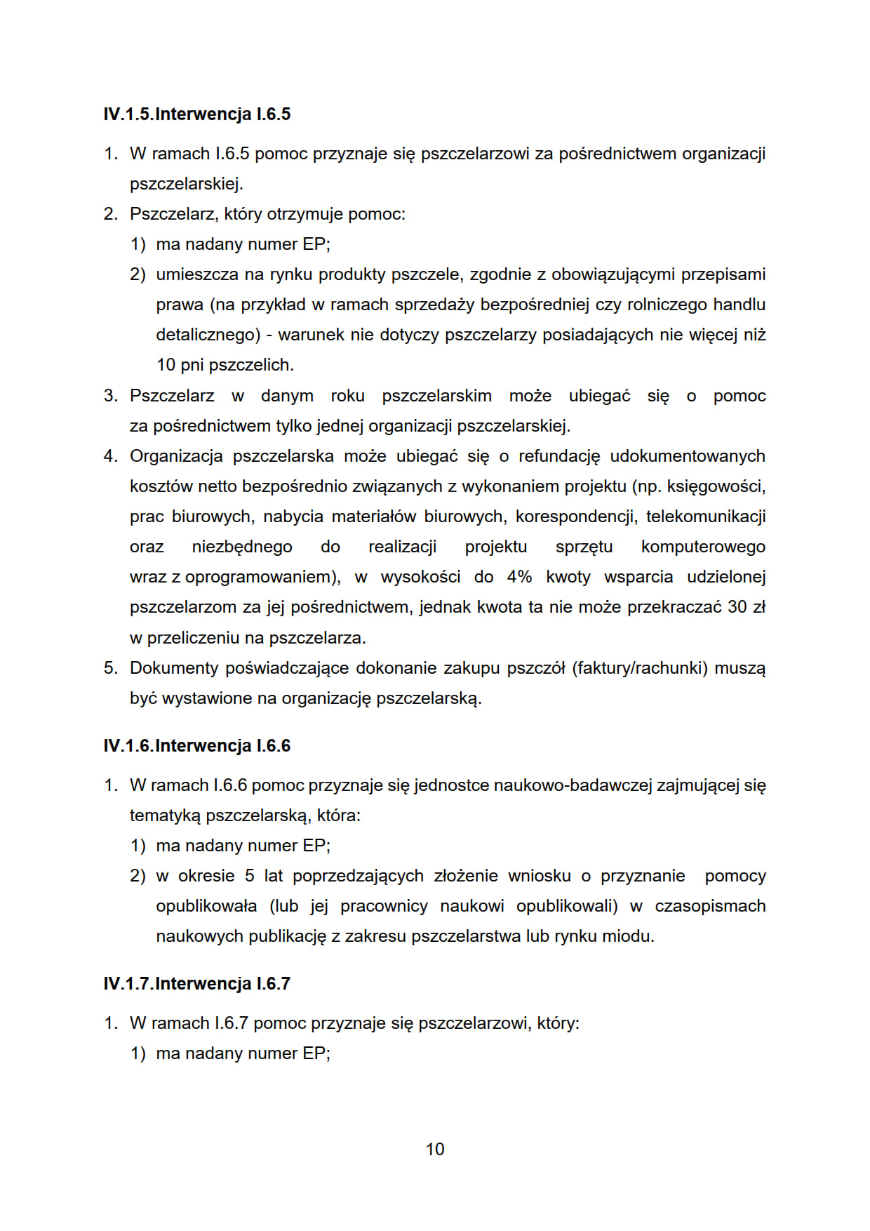 1. W ramach interwencji I.6.3 pomoc przyznaje się pszczelarzowi, który ma nadany numer EP, za pośrednictwem organizacji pszczelarskiej.