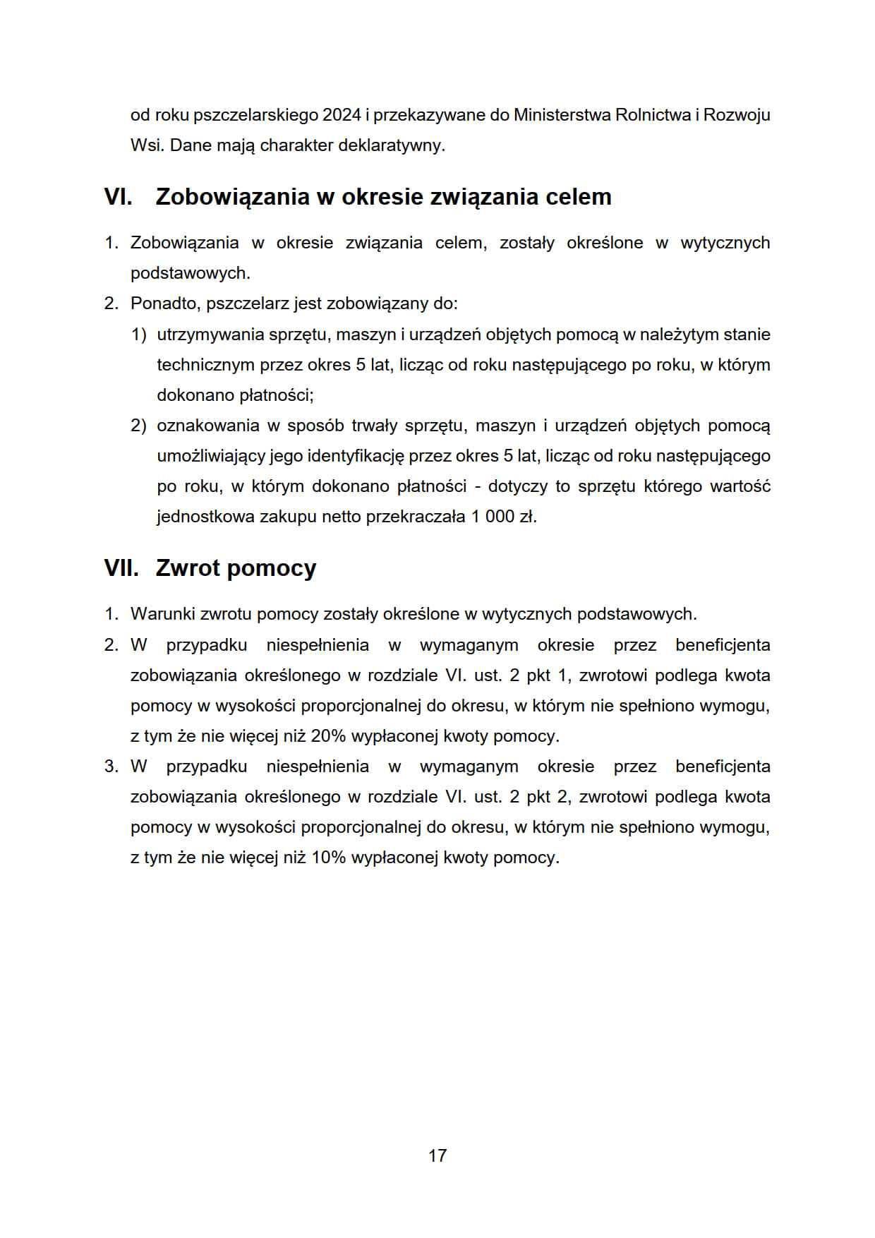 6) warunki zwrotu pomocy.